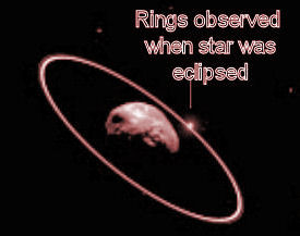 On 3 June 2013, astronomers were studying Chariklo's passage in front of a star, (also known as occulting the star), when they noticed that a few seconds before the eclipse, and again a few seconds after the occultation, there were two very short dips in the star's brightness....and they were able to deterimine this Centaur had 2 rings.