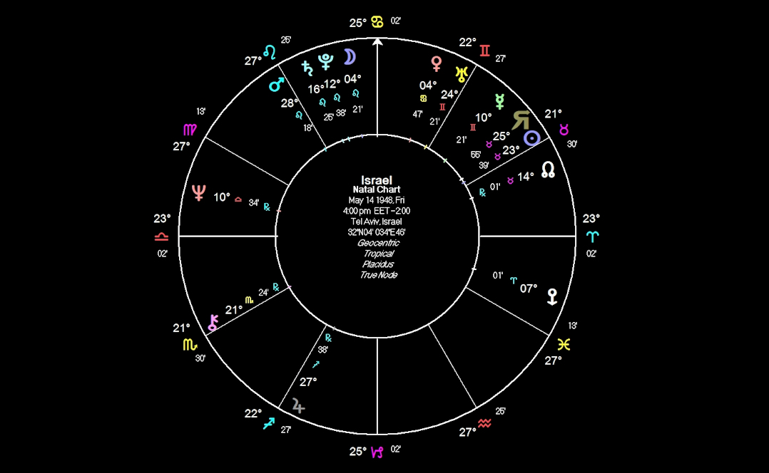 Israel's chart shows a conjunction of the Sun and Taowu in the 8th house,
