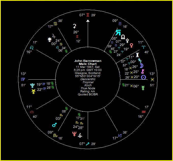 Jupiter | 6°Ge33'D | 25,03,1918 | / | Venus | 27°Ta03'D | 11,06,1947 | / | Venus | 12°Ar25'D | 16,02,1977 | / | Mercury | 10°Sg48'D | 19,11,2003 |
