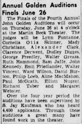 Oct. 11, 1951-Jan. 5, 1952, 100 performances, Lyceum Theatre, NYC. To see a photo, click GLAD