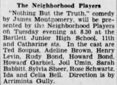 A Pre-Broadway: First began with the Neighborhood Players, Phila.,