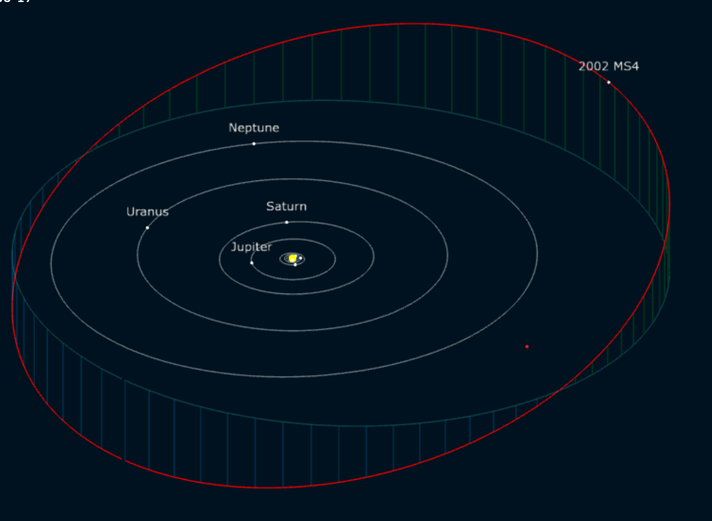 It appears to travel an elliptical orbit around the Sun, bringing it as close as 2.7 billion miles from the Sun and sending it as far out as 4.7 billion miles from the Sun.