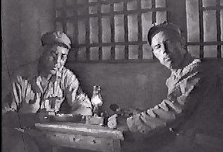 Miller (Rudy) dishes out the evening meal for Major Baldwin (James Stewart).