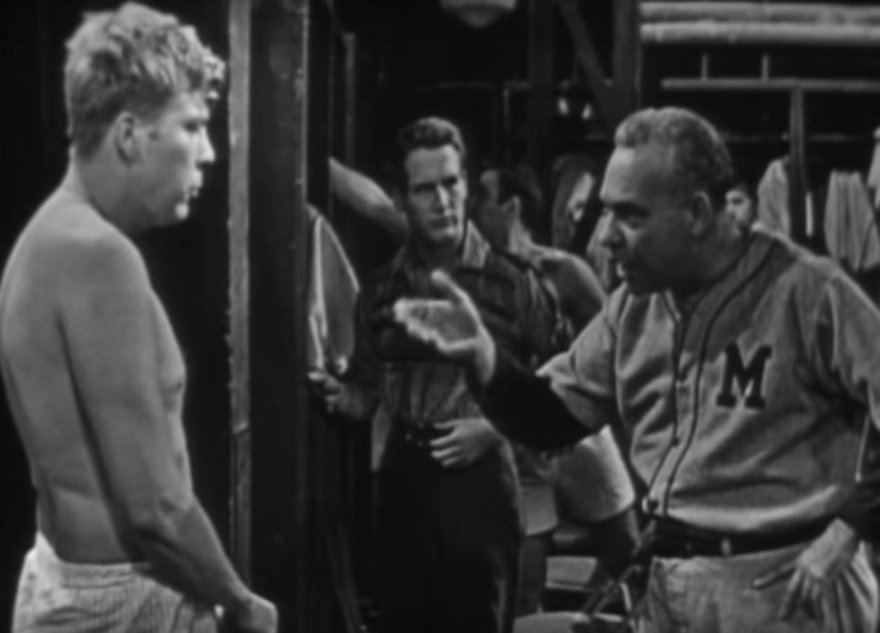 The reprimanding begins while Henry Wiggen (Paul Newman) looks on in the background.