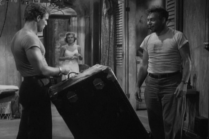 Stanley and Steve carry Blanche's huge trunk into the house: